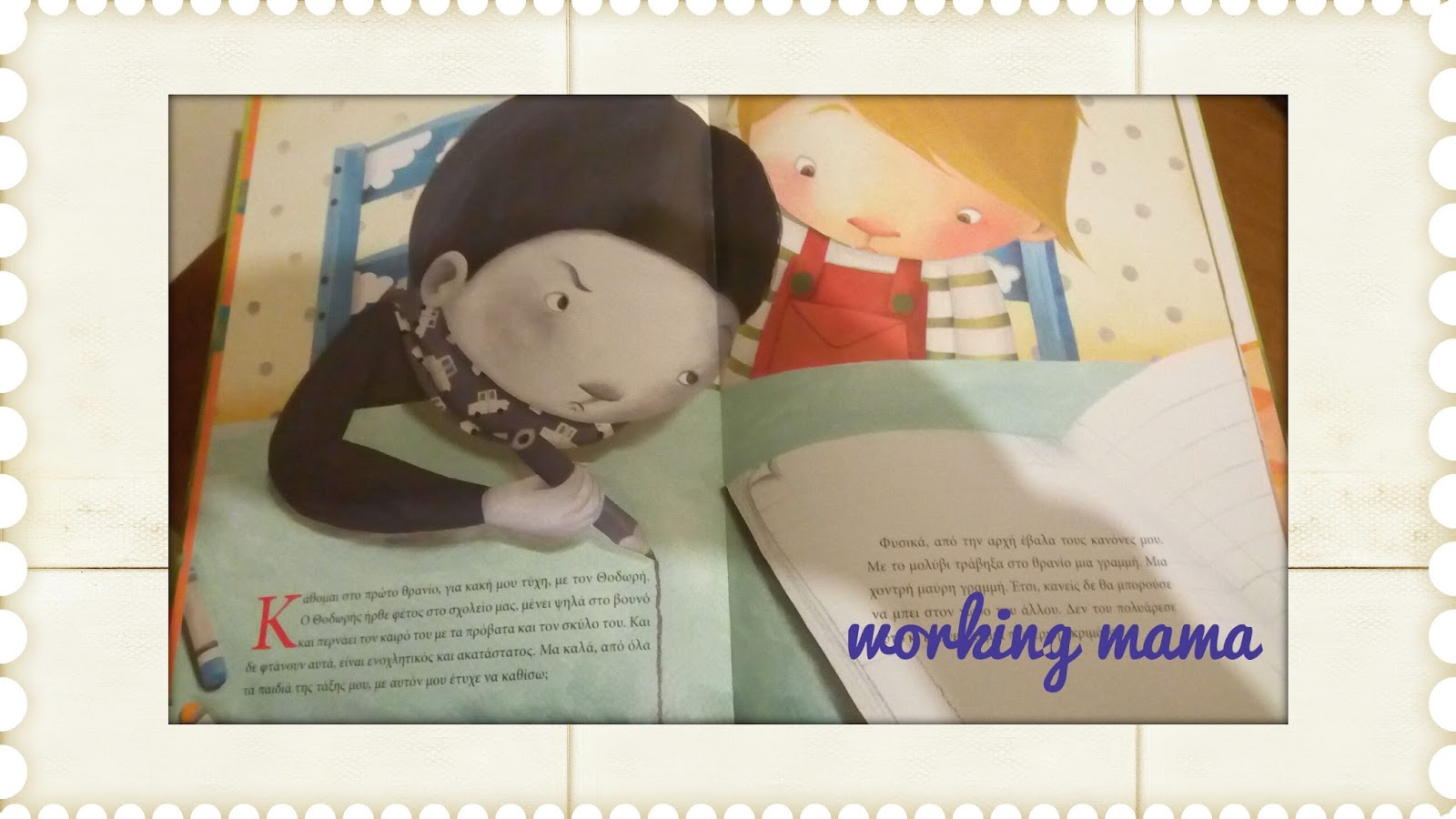 Είναι ένα εξαιρετικό βιβλίο που μιλάει για φιλία και τον σεβασμό που πρέπει να δείχνουν οι συμμαθητές μεταξύ τους. Απευθύνεται σε παιδιά ηλικίας 5+, ενώ ανήκει στην κατηγορία των βιβλίων που μπορούν να διαβαστούν σε 10 λεπτά και πιστέψτε με αυτά τα 10 λεπτά είναι από τα πιο ποιοτικά που μπορείτε να χαρίσετε στο παιδί σας!
