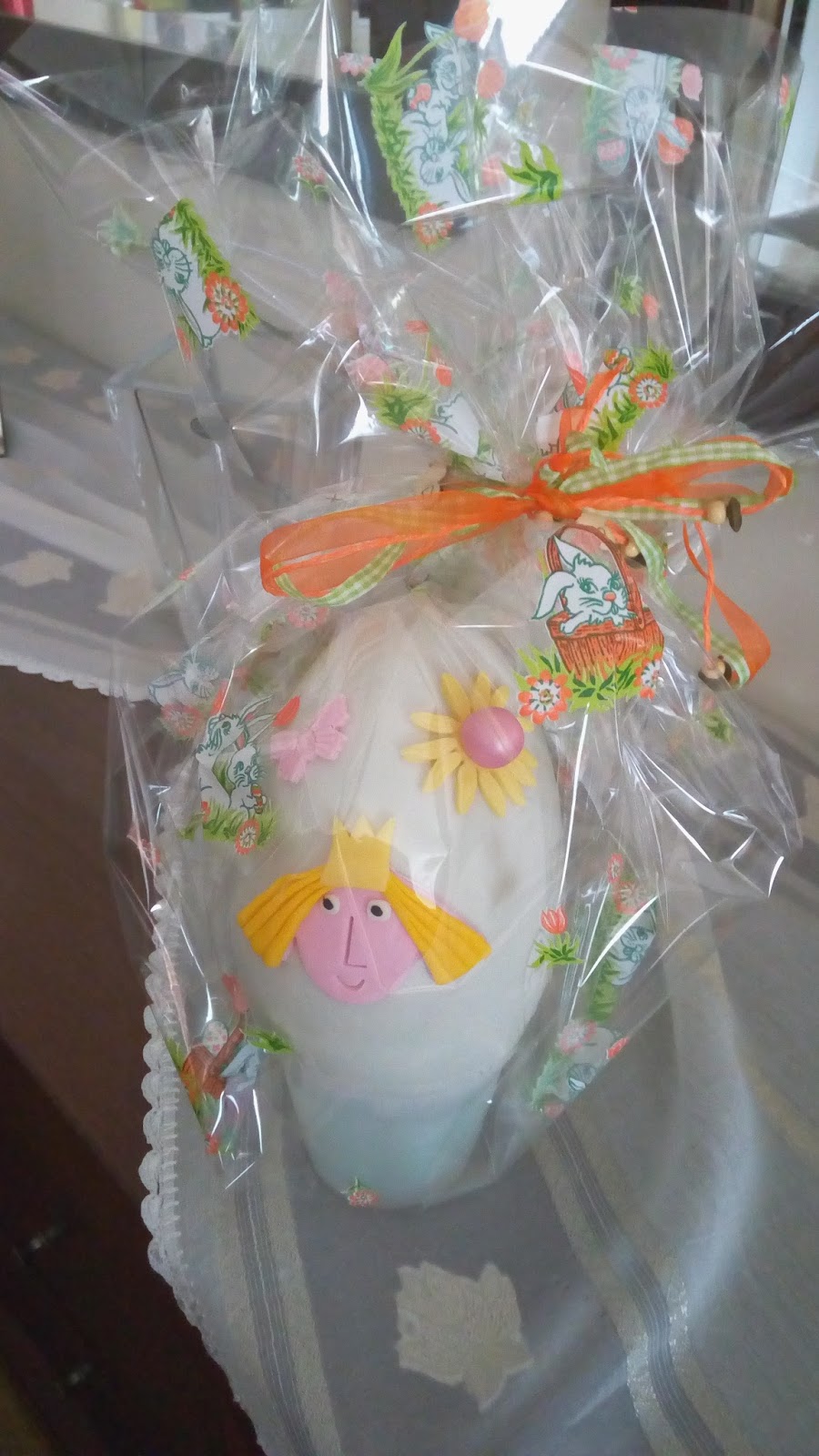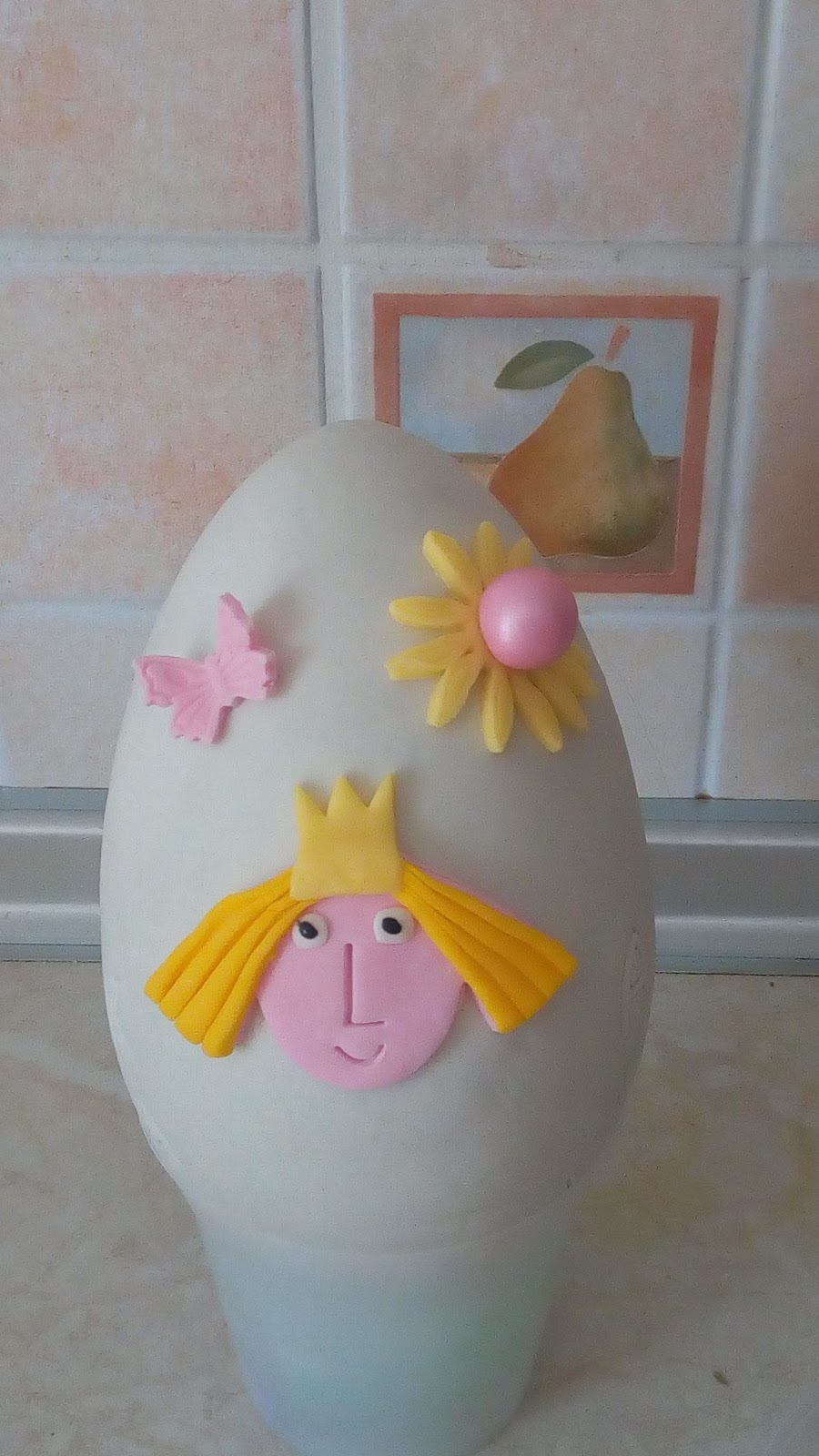 Στη συνέχεια φτιάχνουμε την φιγούρα που επιθυμούμε, στην συγκεκριμένη περίπτωση εγώ έφτιαξα την Χόλι, από το πολύ αγαπημένο παιδικό Χόλι και Μπεν, η νεράιδα και το ξωτικό.. Ενώ, έφτιαξα και μια πεταλουδίτσα και ένα λουλούδι για να συμπληρώσω την διακόσμηση μου. Τέλος μπορούμε να τυλίξουμε το αβγό σε μια όμορφη πασχαλιάτικη ζελατίνη ή να το βάλουμε σε ένα διαφανές κουτί.